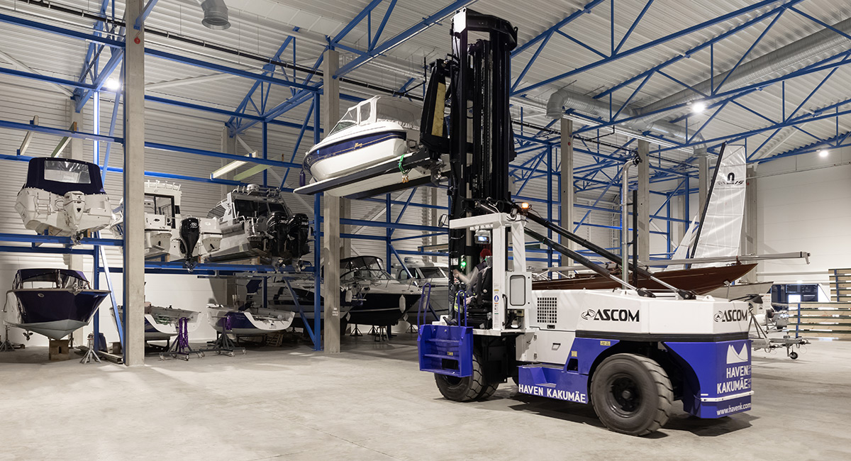 Haven Kakumäe offers a new service – warm inside winter storage of motorboats on shelves. The boat is kept on racks in the hangar. Using 7t forklift we can easily launch a vessel from water within 15 min and move inside. Service is suitable for boats with 10m LOA.